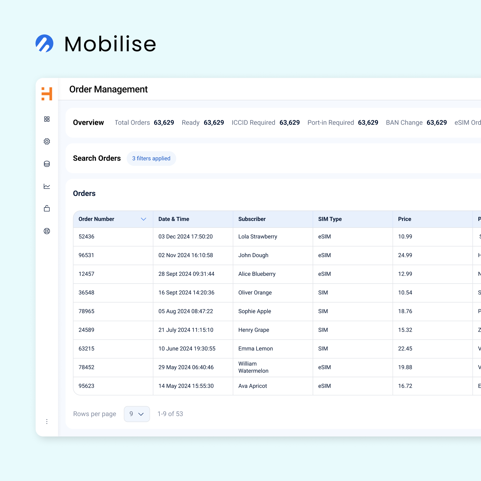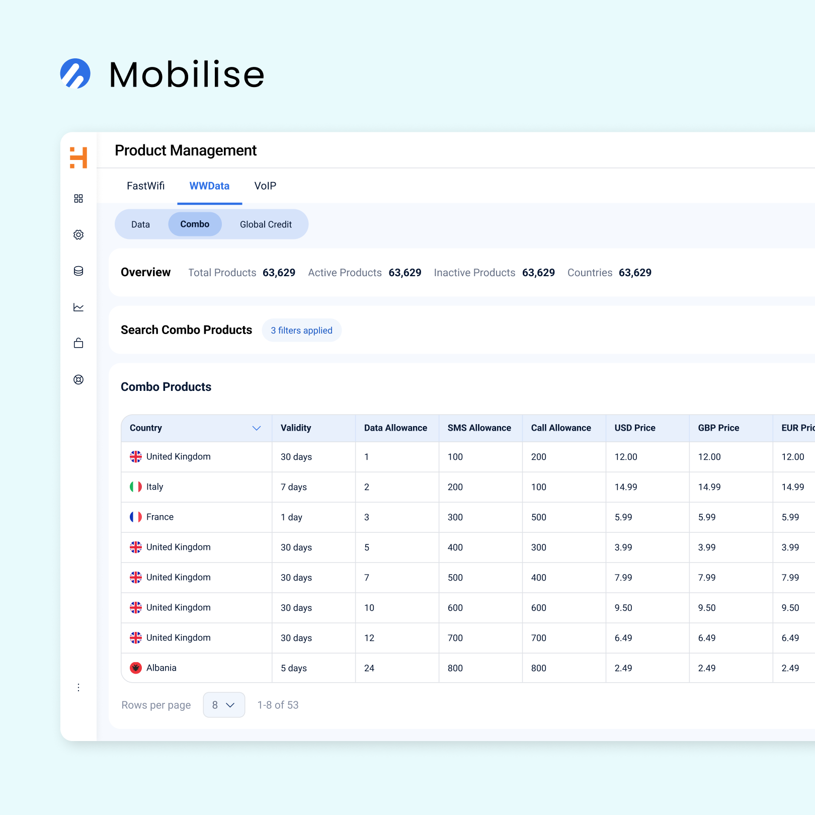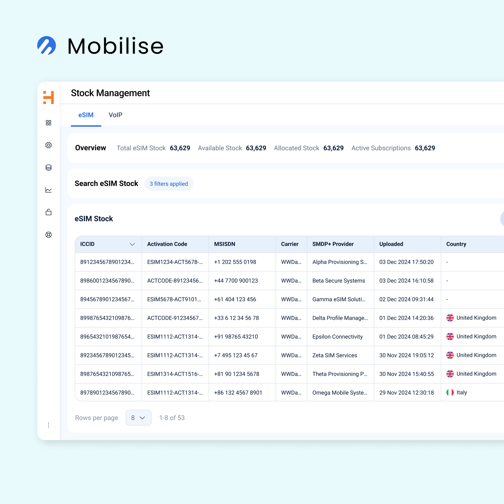 Stock tracking for eSIMs and DID numbers is simplified with real-time inventory visibility.